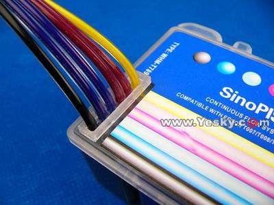 這是目前無(wú)海綿連續(xù)供墨系統(tǒng)最理想的走線方式,設(shè)計(jì)為一體,接頭在墨盒表面蓋子的下面,美觀大方